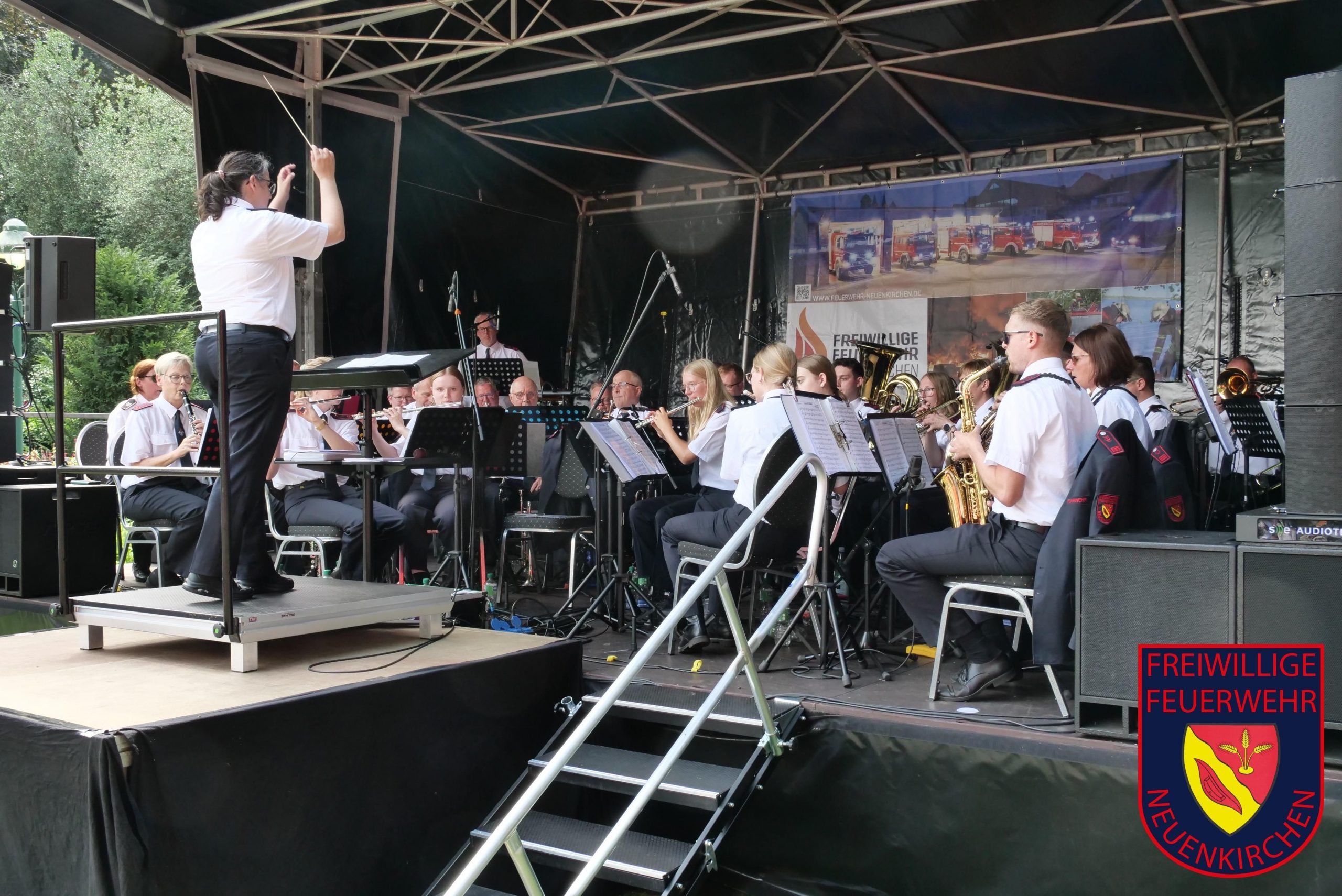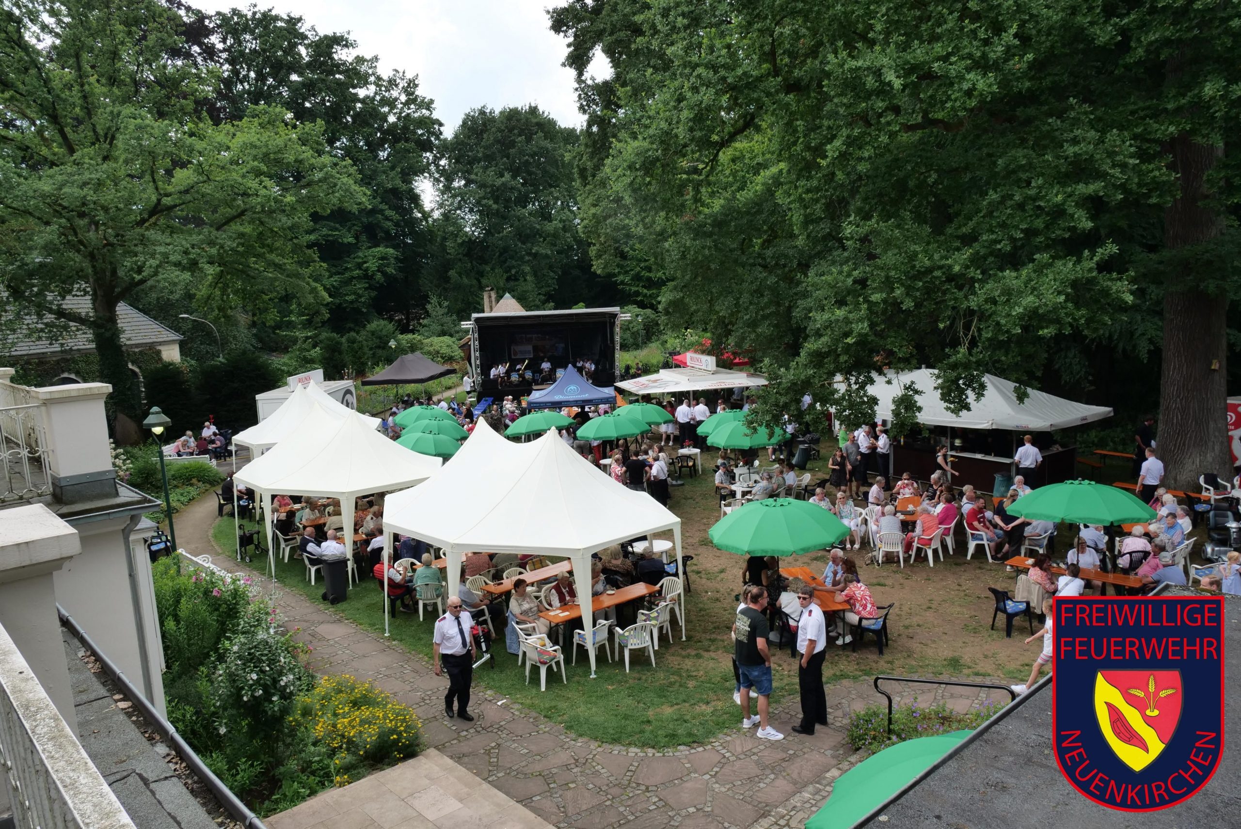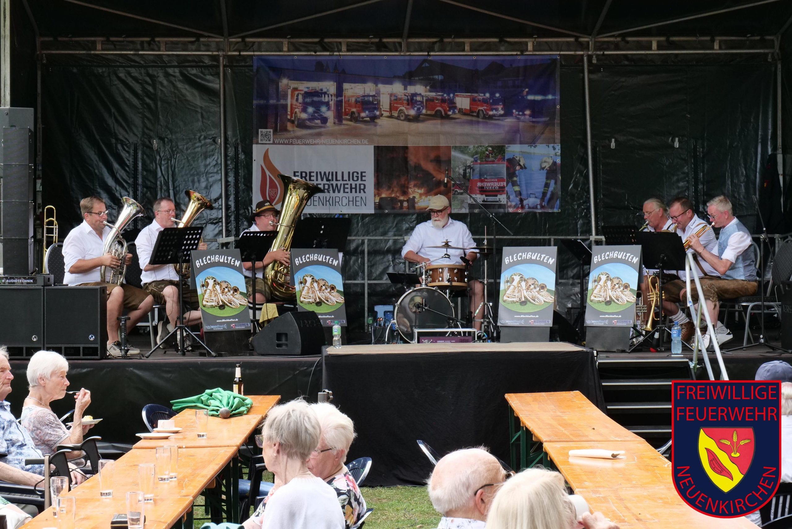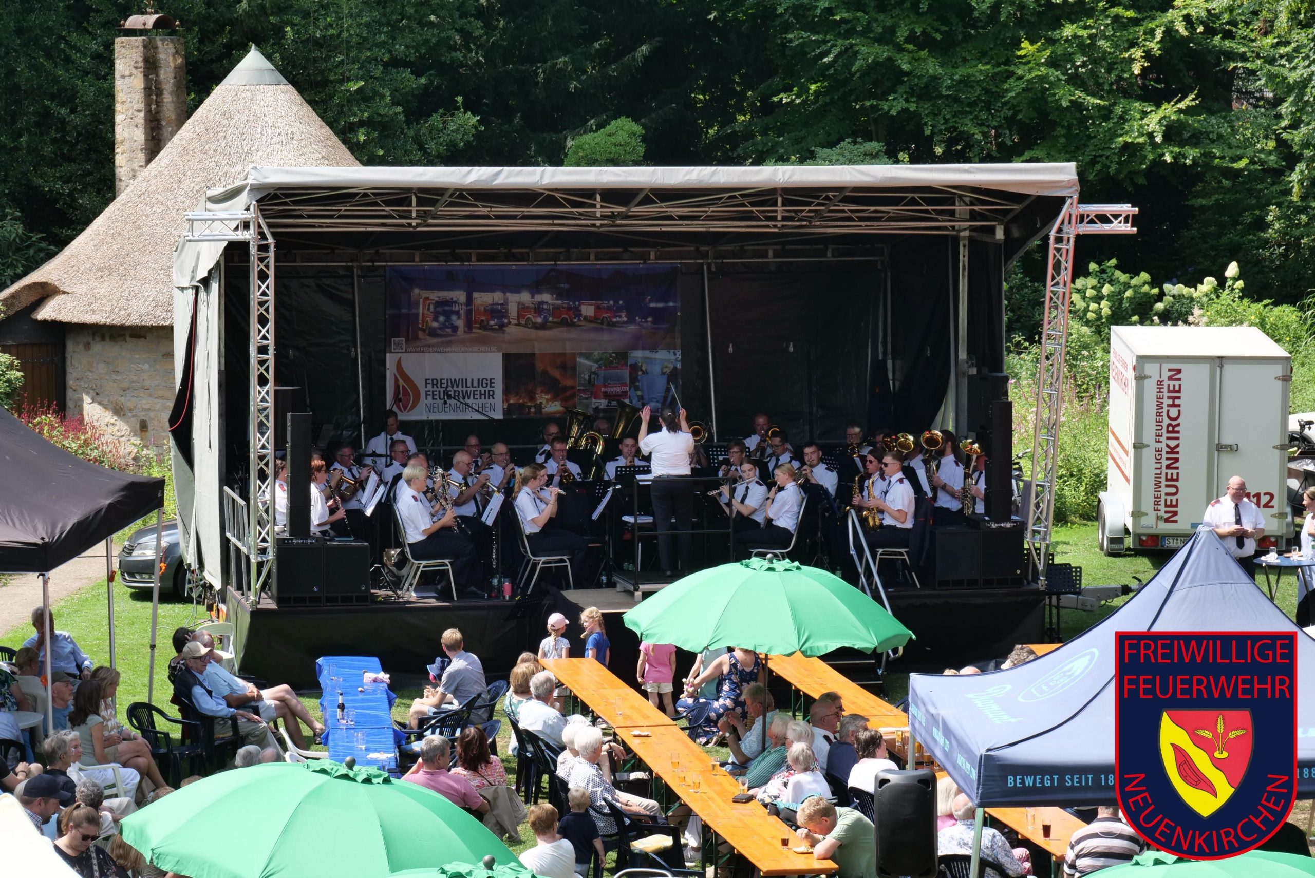 Das Sommerfest für unsere Ehrenmitglieder im Park der Villa Hecking war am vergangenen Sonntag erneut eine gelungene Veranstaltung für die zahlreichen Besucher. Mittlerweile ist das Sommerfest nach der erstmaligen Durchführung im Jahr 2022 ein fest etablierter Bestandteil im Veranstaltungskalender in Neuenkirchen. Den vielen Gästen bot in den ersten Stunden der Musikzug unter der Leitung von Simone Andres ein abwechslungsreiches Konzert mit vielen modernen und auch traditionellen Musikstücken, sodass für jeden Besucher etwas dabei war. Ein weiterer Höhepunkt war dann am Nachmittag das Konzert der Kapelle „Blechbulten“ aus Rhede, deren Repertoire die volkstümliche Blasmusik ist. Fast zwei Stunden unterhielten die sechs Musiker das Publikum aber auch mit modernen Medleys. Für die kühlen Getränke waren an diesem Sonntag die „Windbühls“ zuständig, für die Versorgung der Besucher mit Kaffee und Kuchen sowie Bratwurst und Pommes sorgten die Kameradinnen und Kameraden der Feuerwehr nicht weniger professionell.