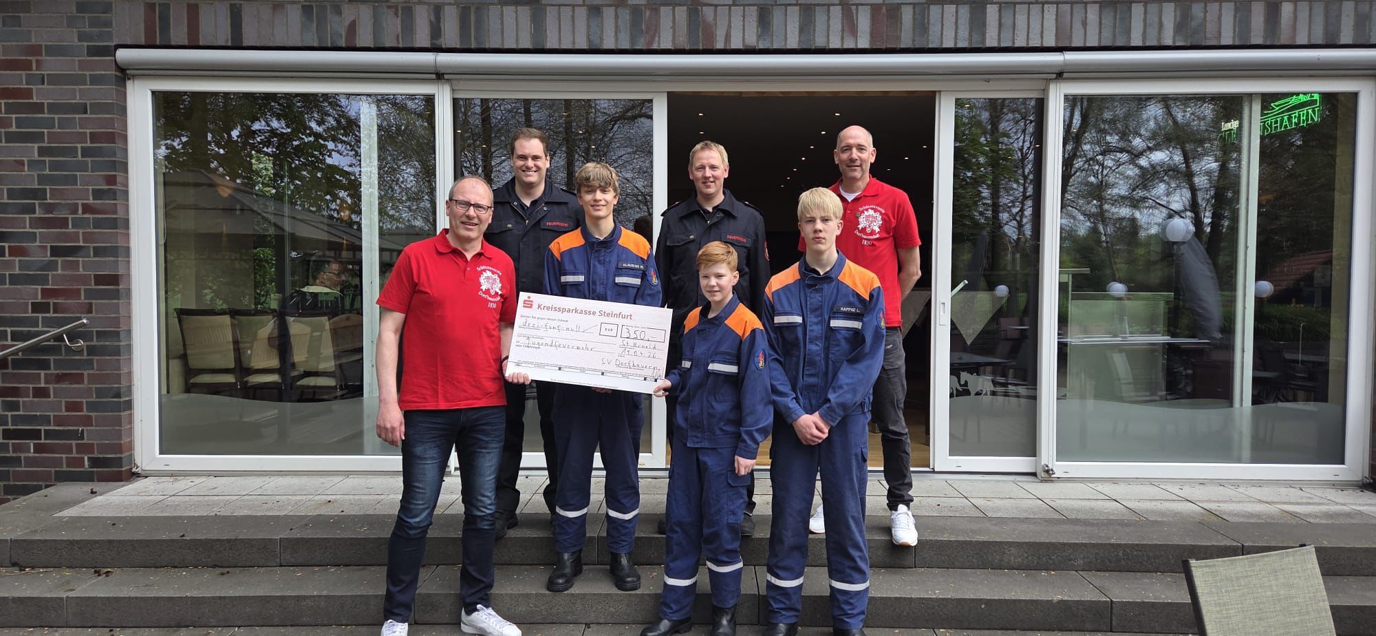 Die Jugendfeuerwehr Neuenkirchen bedankt sich beim Schützenverein Dorfbauerschaft für die Spende.