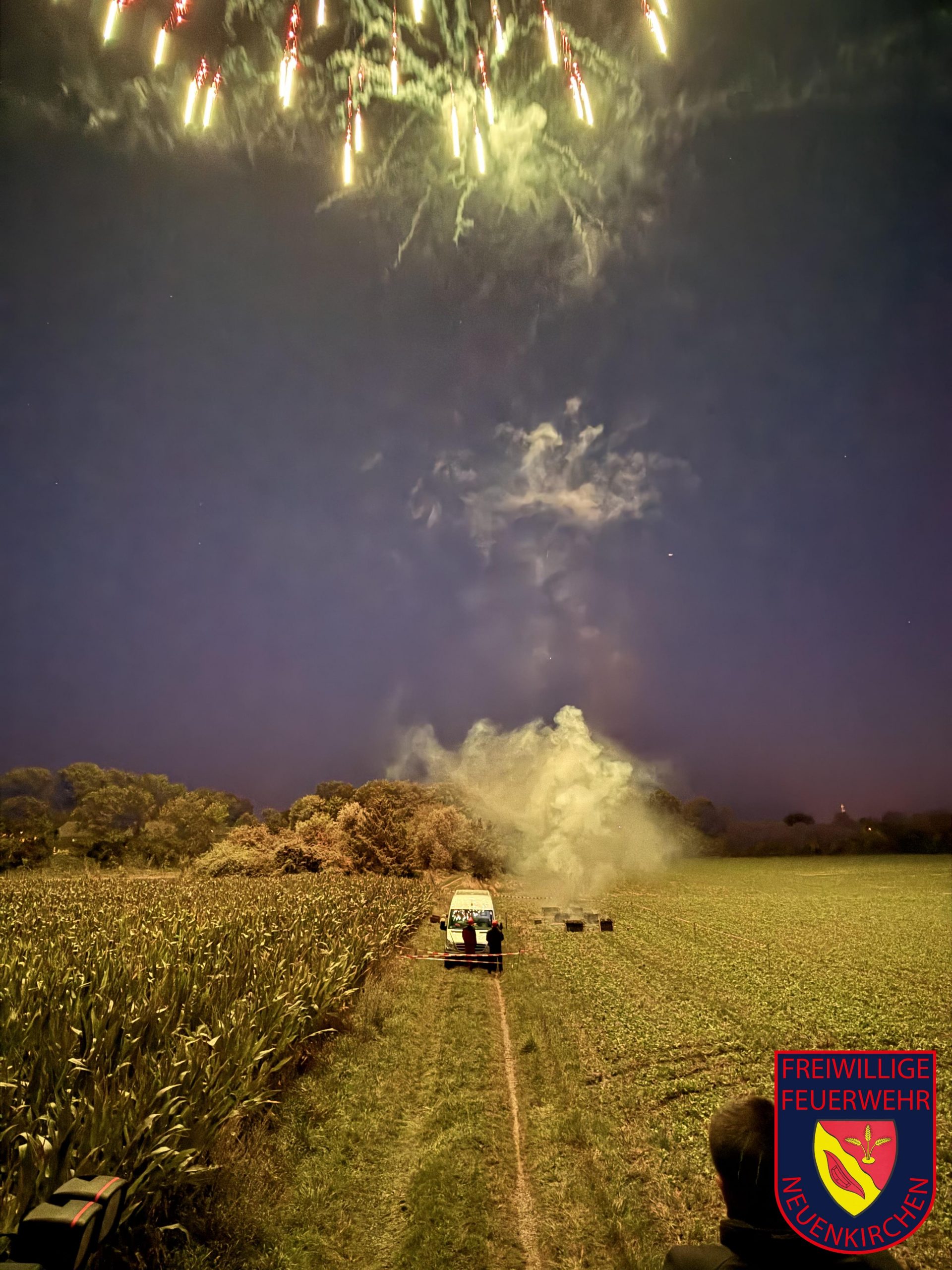 Zu einer Brandsicherheitswache rückten am Samstagabend sechs Kameraden der Feuerwehr Neuenkirchen mit dem TLF3000-2 aus. Im Hovekampsweg wurde gegen 22 Uhr das jährliche Feuerwerk der Neuenkirchener Kirmes gezündet. Die Einsatzkräfte sicherten den Abschussort ab kontrollierten nach dem Feuerwerk die Umgebung.