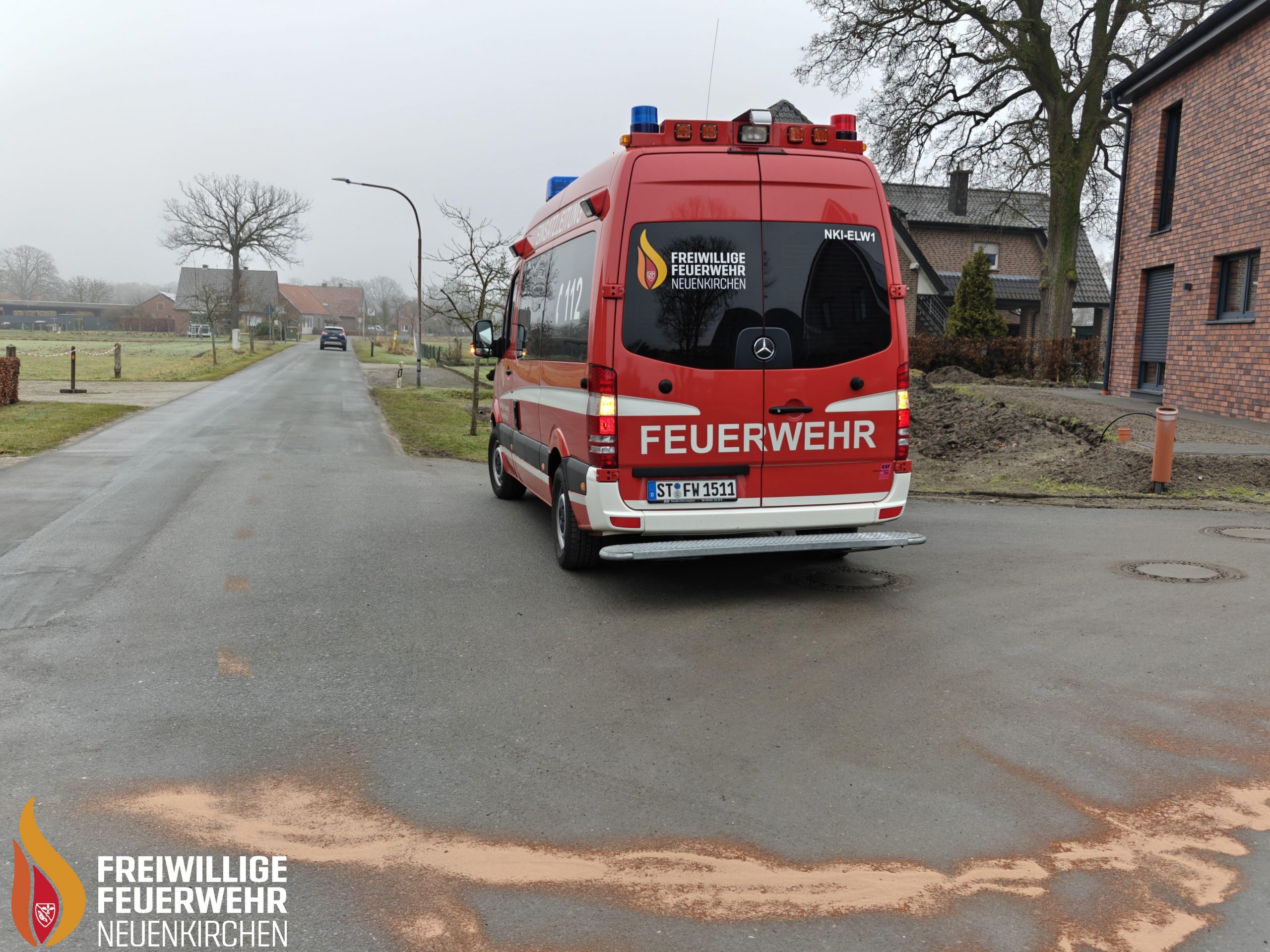 Erneut wurde die Feuerwehr Neuenkirchen mit dem Stichwort Öl-Erkunder alarmiert. Am Sonntag um 12:05 Uhr führte eine verunreinigte Straße die Kameraden zur Paul-Klee-Straße.